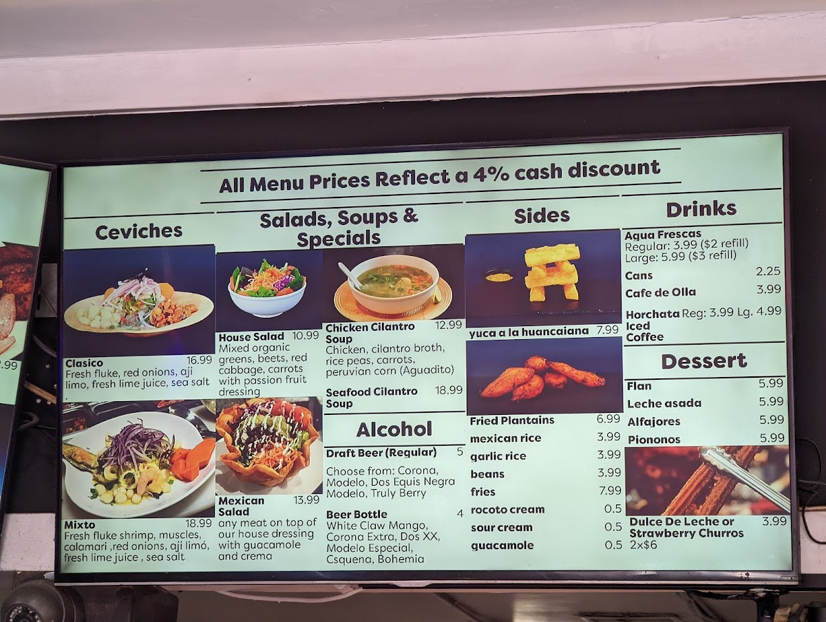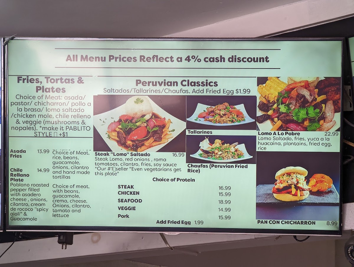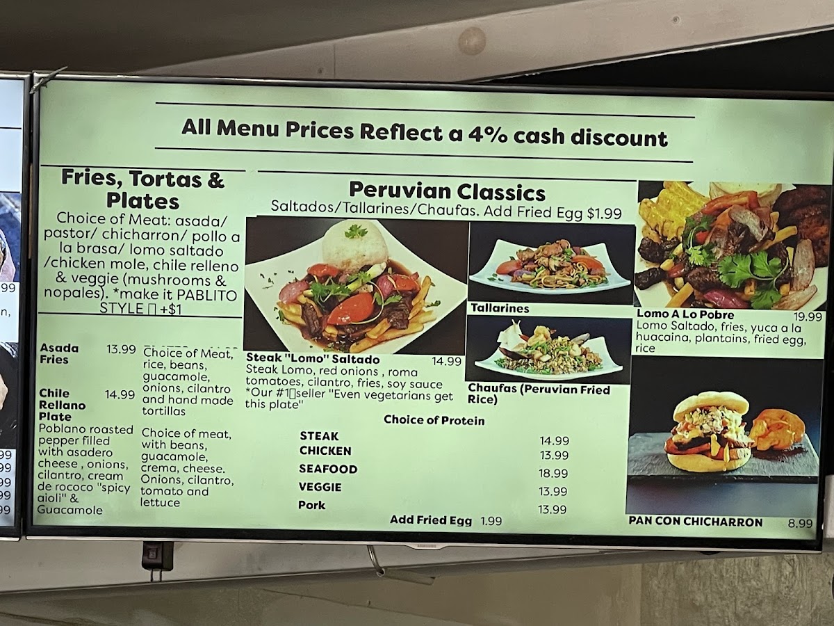 Veggie $18.99 | Steak "Lomo" $20.99 | Pollo $19.99 | Pork $19.99 | Shrimp $24.99 | Mar y Tierra (Steak & Shrimp) $24.99
